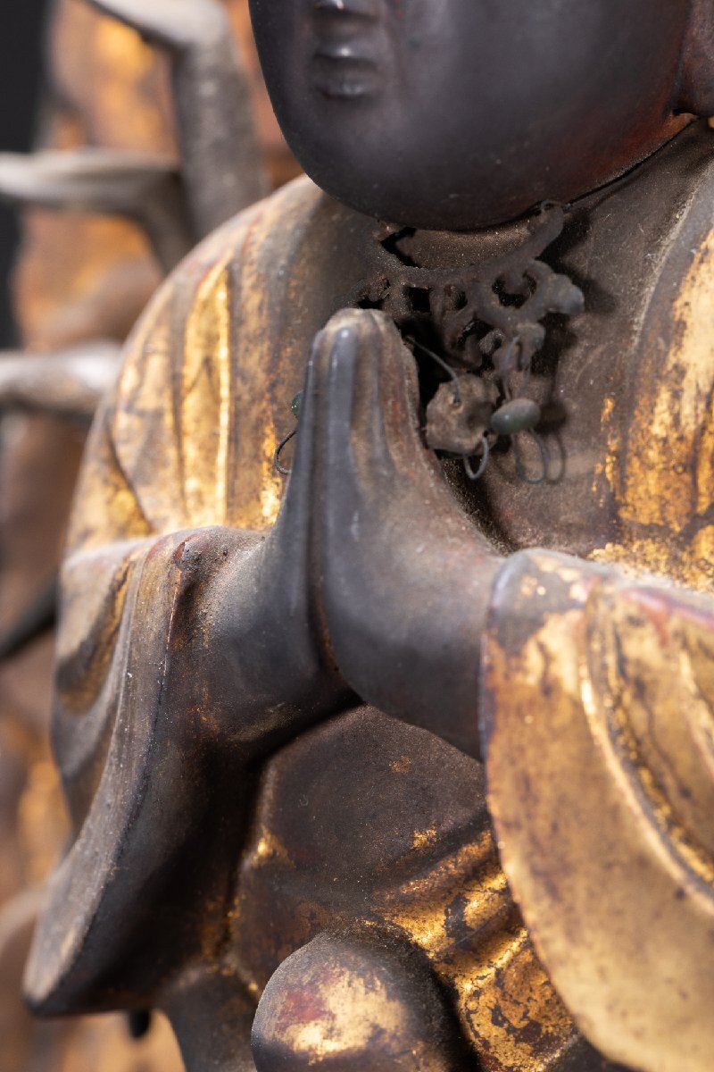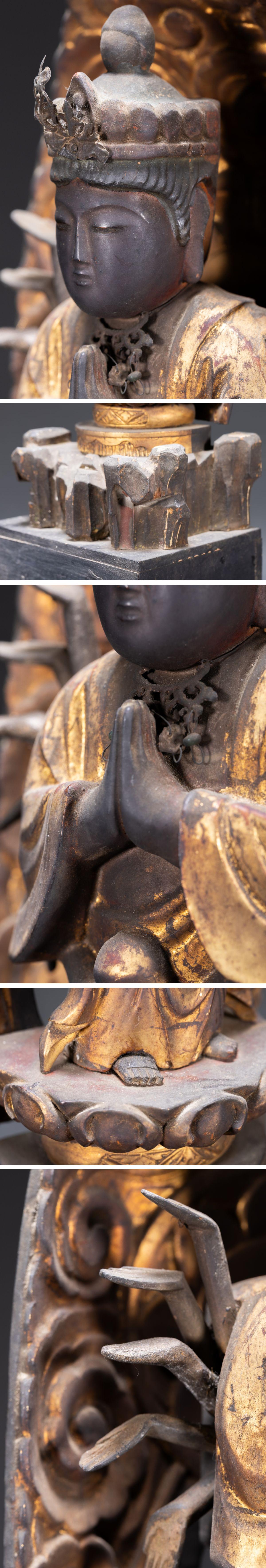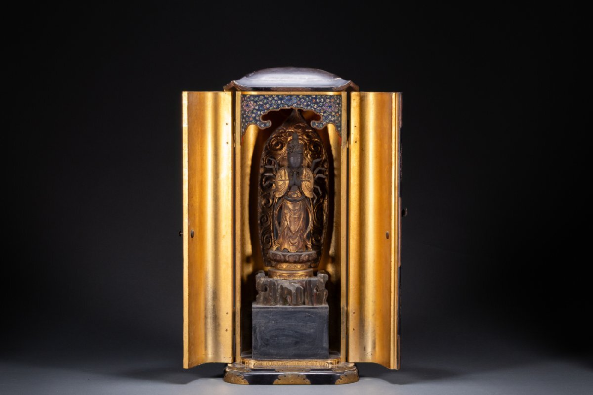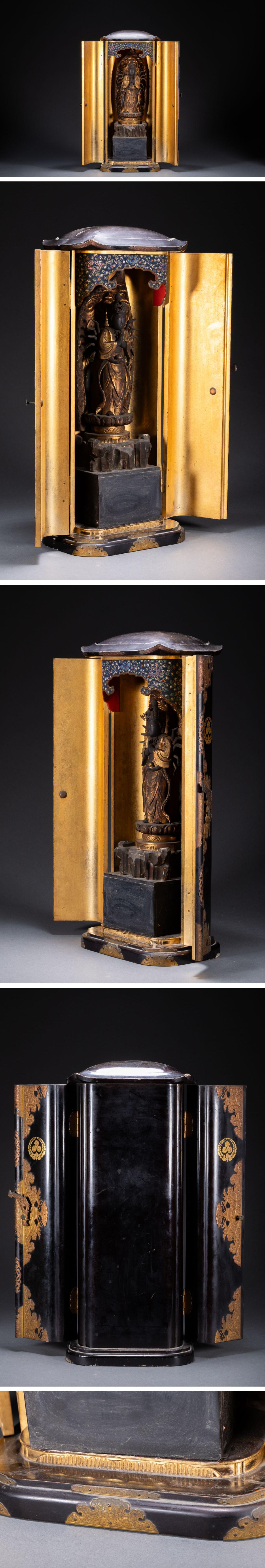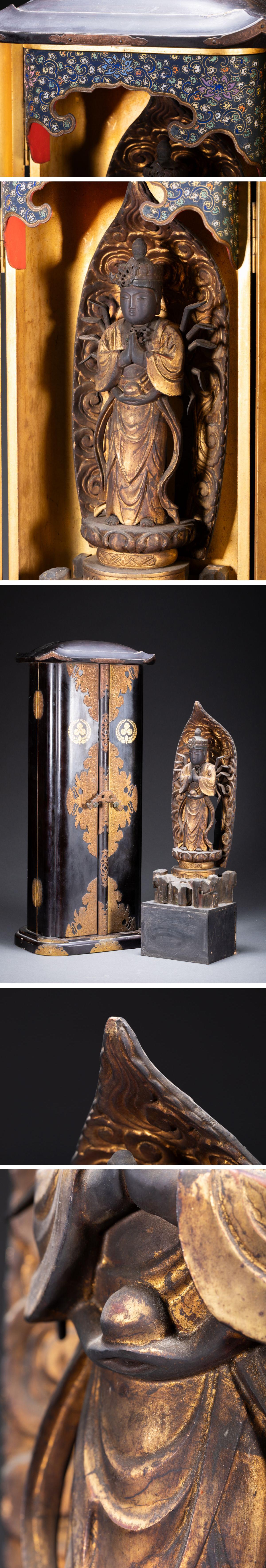 【清】関西某オークション購入 江戸時代 木彫金箔 観音菩薩造像 厨子入 極細工 古置物 古擺件 古美術7L11-2S7