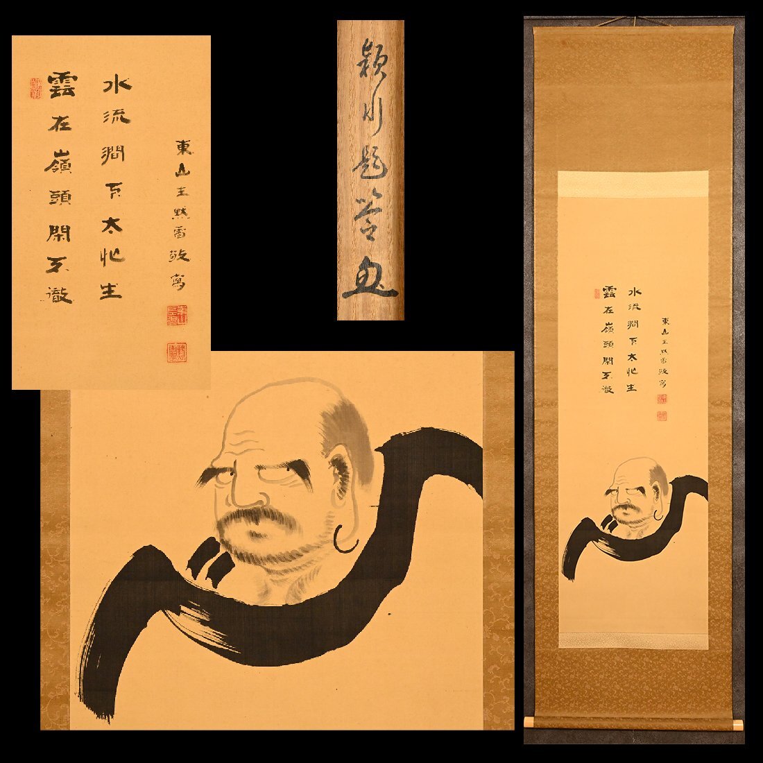 【永】a099【兵庫県の図書館や博物館の館長を歴任された歴史研究家遺族委託品】掛軸 竹田黙雷 水墨漢詩だるま幅 優品
