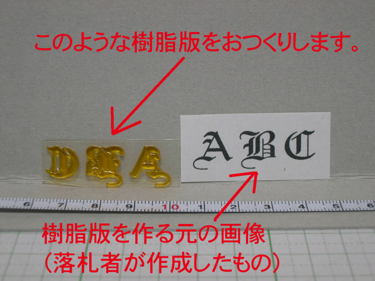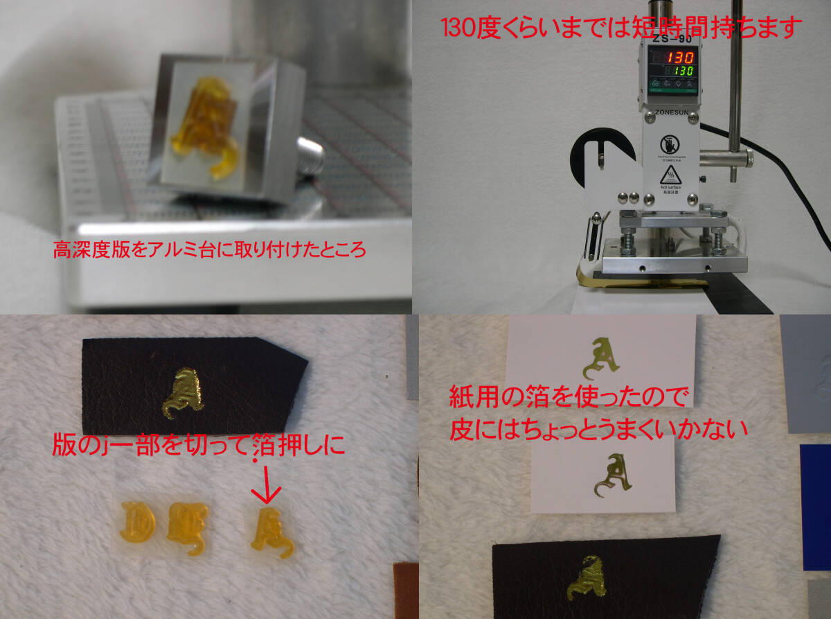 プレス用版は真鍮などの金属で作成するのが普通ですが、凸版用樹脂版でも出来ます。