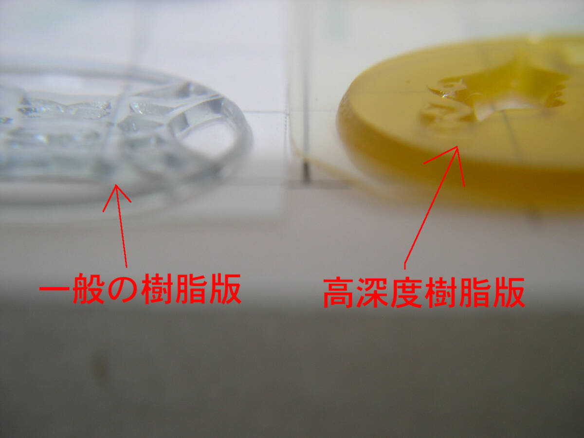 材料は固く高圧に耐えしかも普通の樹脂版より彫りが深くできます。