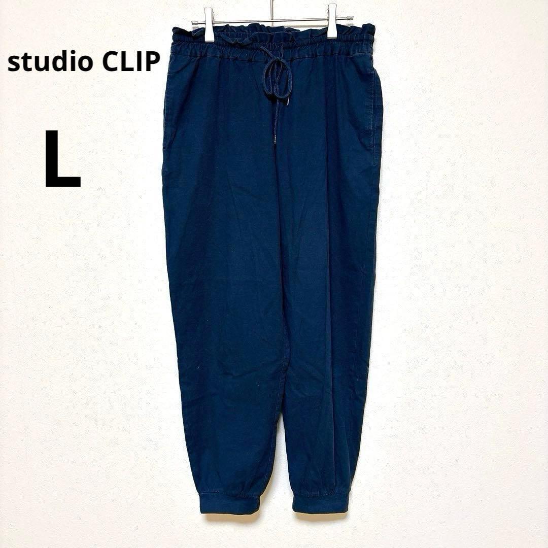 studio CLIP ジョガーパンツ L ネイビー 紺 ウエストゴム 29E3EE