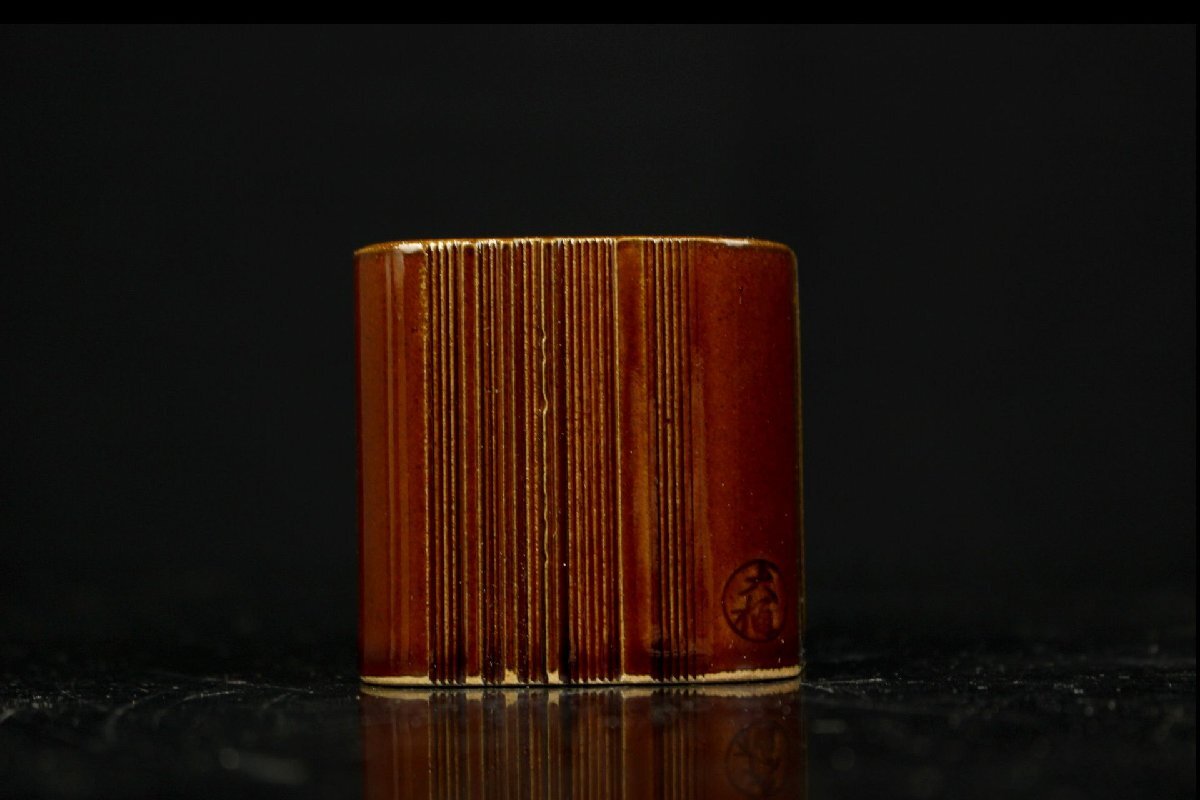 【董芸】茶道家旧蔵 十代 大樋 長左衛門 窯 作 四方 大樋蓋置 共箱 茶道具 真作保証