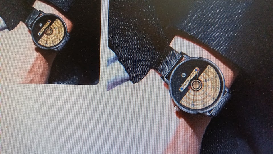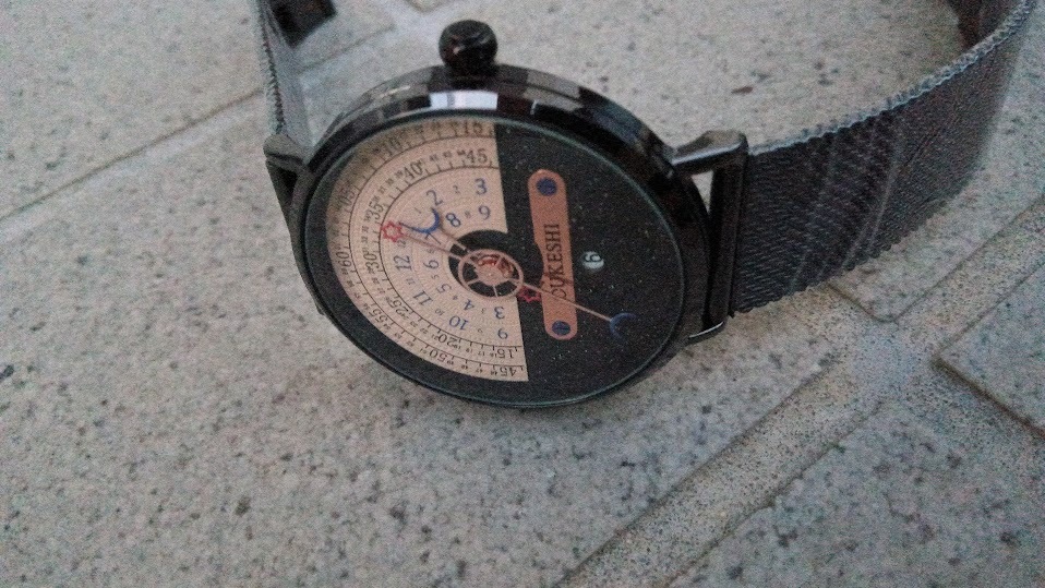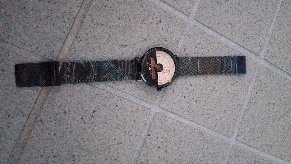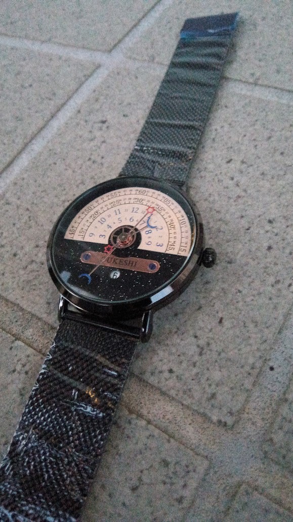 ユニーク 短針が時刻、長針が分、中央の歯車が秒刻みに動きま、丸い窓が日です。新品 未使用 送付料無料(B72-3237)画像4が販売対象品すべてです、物品(文字板、ベルト等)の表記は画像そのものです、画像5.がベンダー詳細 時計ケースの厚さ約:11mm