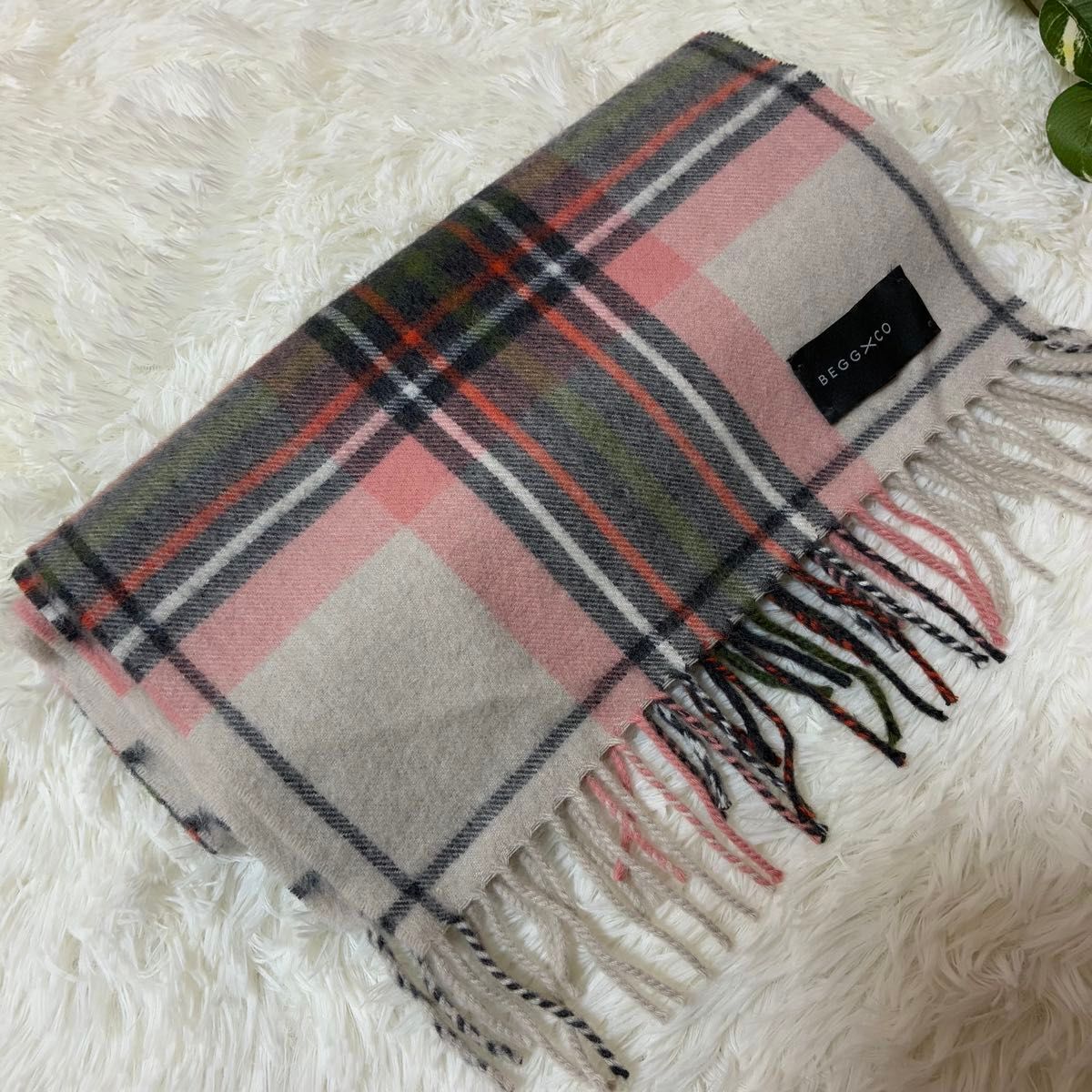 BEGG x CO(ベグアンドコー)のアンゴラ混マフラーです。ピンクを基調としたチェック柄で、これからの季節に活躍するアイテムです。肌触りの良い素材で、首元を暖かく包み込んでくれます。