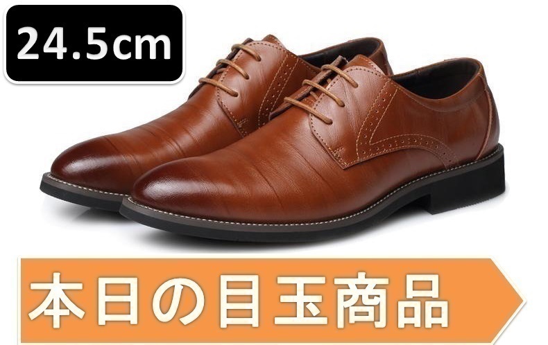 本日の目玉 ☆ メンズ ビジネス レザー シューズ ライトブラウン サイズ 24.5cm 革靴 靴 カジュアル 屈曲性 通勤 軽量 【208】