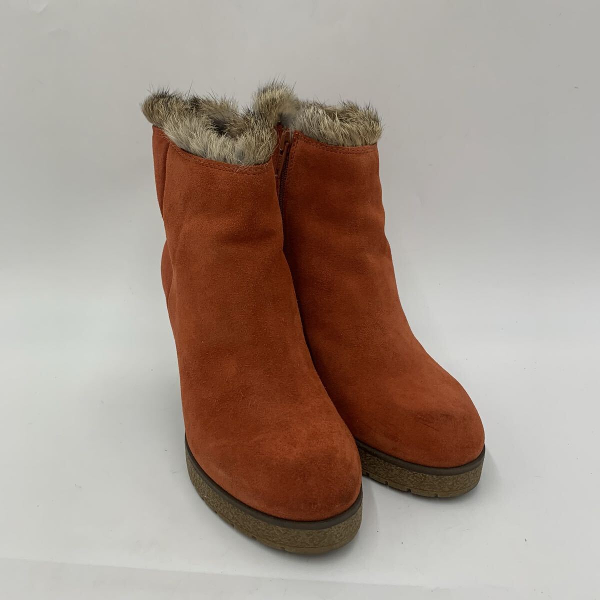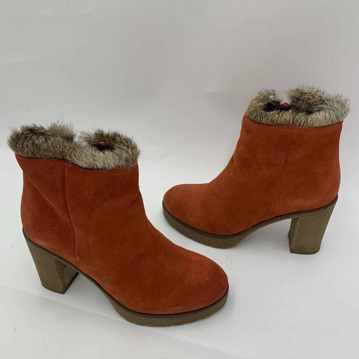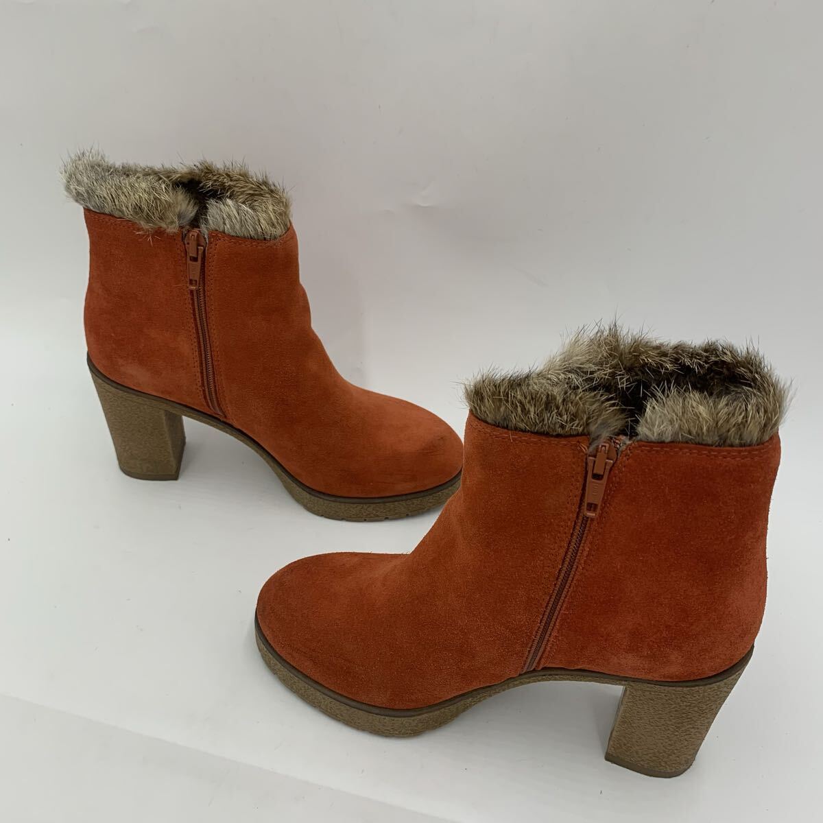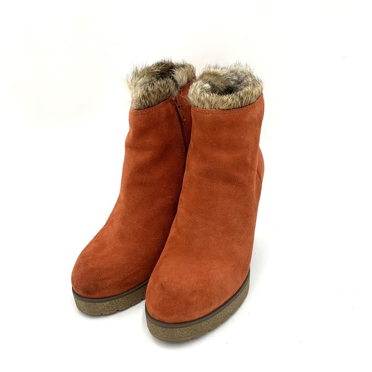 F ▼ 洗練されたデザイン!! 'イタリア製' KAREN LIPPS カレンリップス 本革 スエード サイドジップ ヒール ショートブーツ 35 22cm程