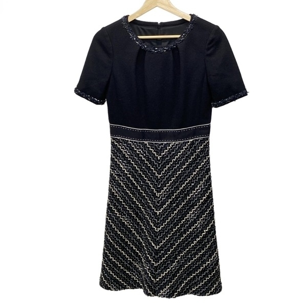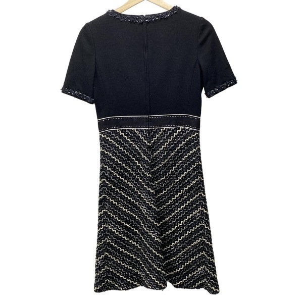 ハロッズ HARRODS サイズ2 M - 黒×アイボリー レディース クルーネック/半袖/ひざ丈/ラメ/ツイード 美品 ワンピース