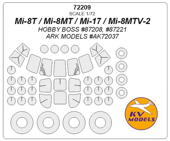KVモデル 72209 1/72 Mi-8T / Mi-8MT / Mi-17 / Mi-8MTV-2 (ホビーボス/ARK MODELS) + ホイール キャノピーマスキングシート