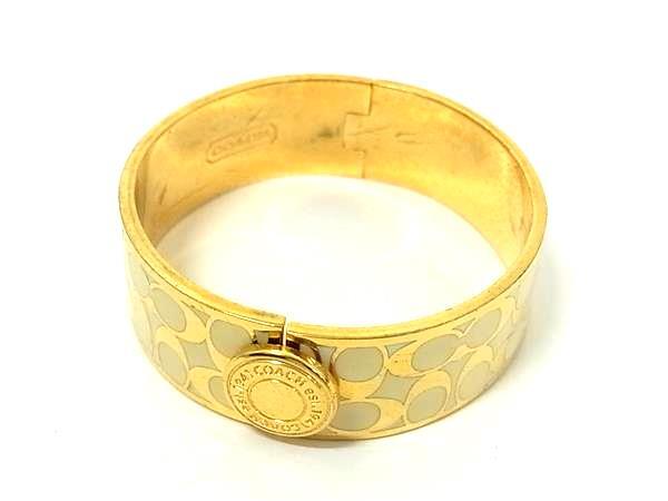 COACH コーチ シグネチャー ブレスレット バングル アクセサリー レディース ゴールド系×アイボリー系 DK6202