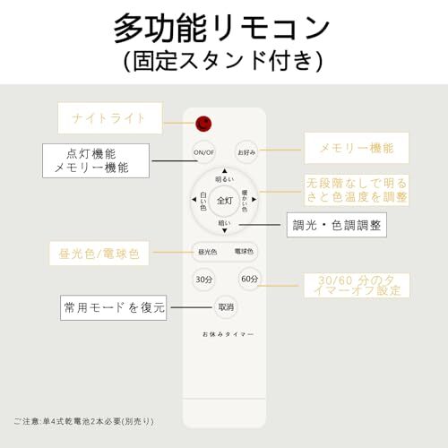【新機能搭載】メモリー点灯機能:次回点灯時に、前回の明るさ設定が自動で復元される便利なシーリングライト。毎回設定し直す手間が省けます。おやすみタイマー機能(15分 / 30分):消し忘れの心配がない、安心のシーリングライト。