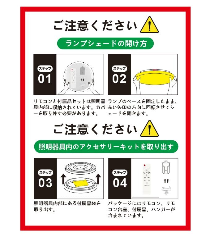 【取り付け】一体型設計のため、配線や工具が不要。専門の電気技師に頼む必要もなく、このシーリングライトは初心者の方でも約1分で簡単に取り付け可能です。