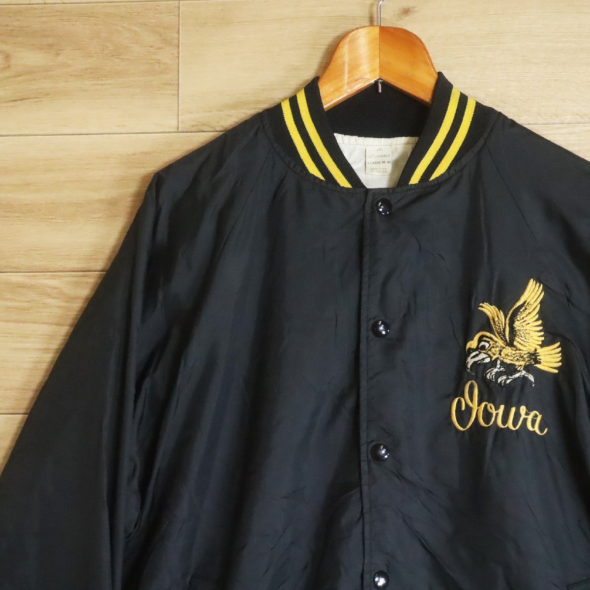 D5O/S5.28-1 70S ビンテージ USA製 ナイロンスタジャン アワードジャケット バーシティジャケット XL IOWA 刺繍 米国製
