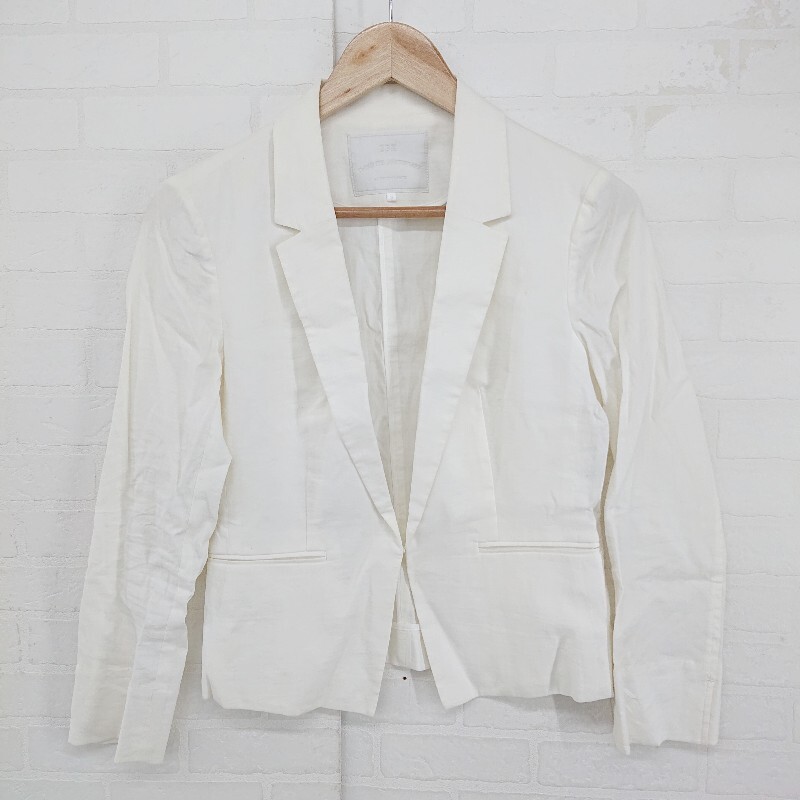 ◇ 23区 ニジュウサンク シンプル リネン混 涼しげ 長袖 ジャケット サイズ38 ホワイト レディース E