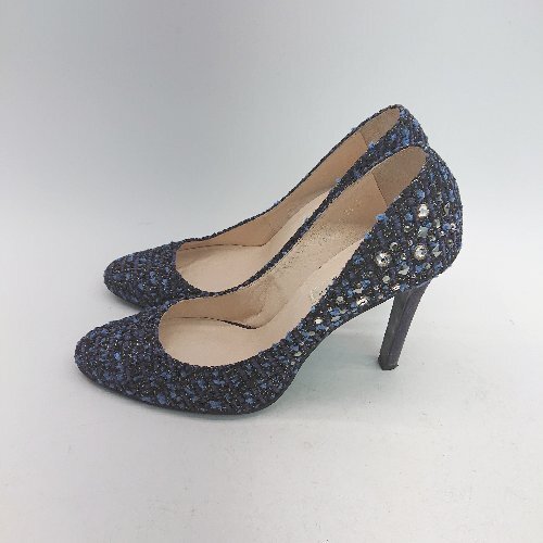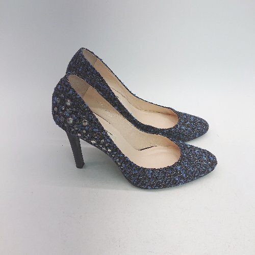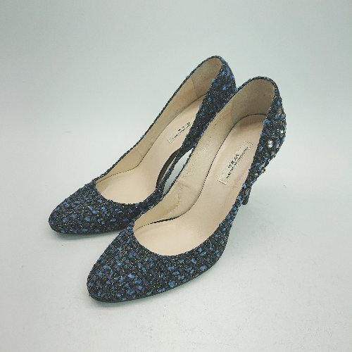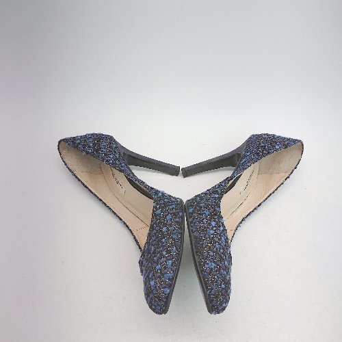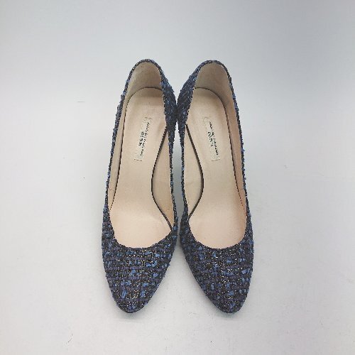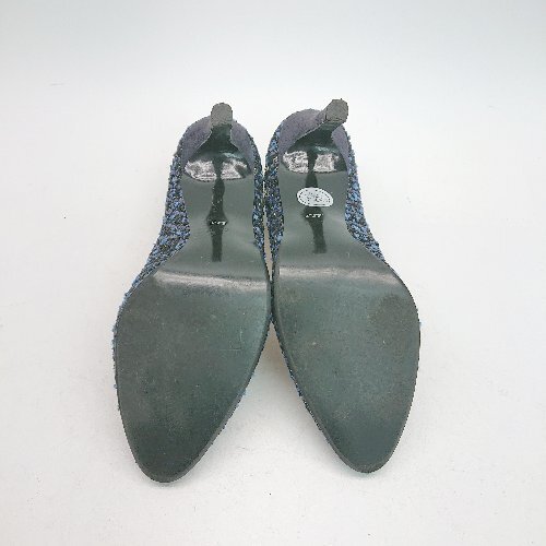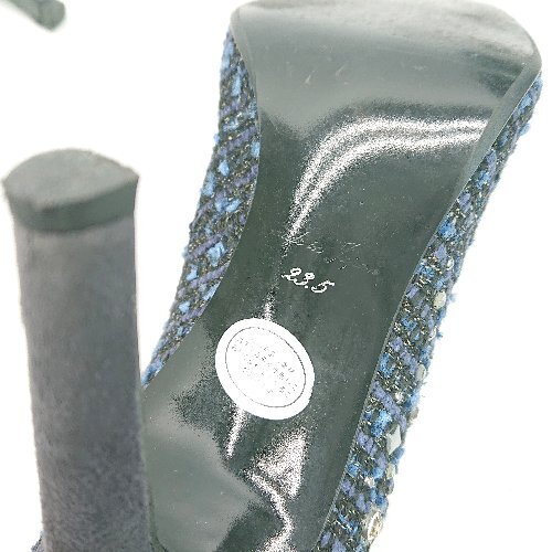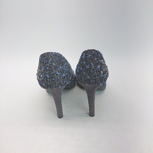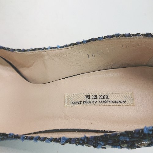 ◇ SAINT TROPEZ CORPORATION? ビジュー ピンヒール ラウンドトゥ ツイード パンプス サイズ23.5 ブルー レディース E