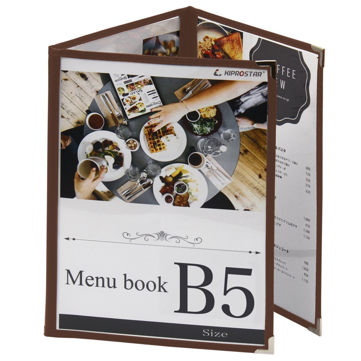| 即納 メニューブック 6ページ(見開き3枚・6面) B5対応 観音 茶 |