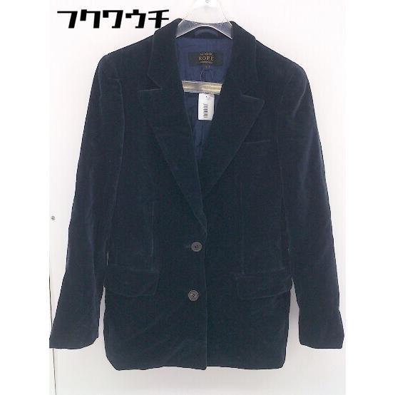 ◇ ROPE' ロペ ベロア調 肩パット 2B 長袖 ジャケット ブレザー サイズ 7 ネイビー レディース