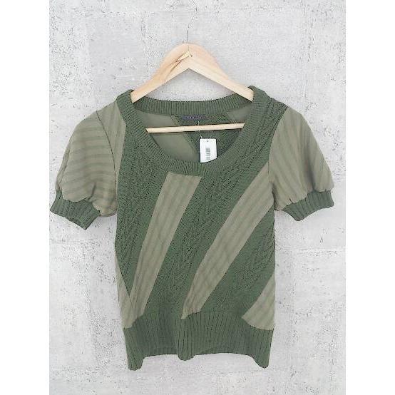 ◇ crolla クローラ アクアガール 切替 ウール 半袖 ニット セーター カーキ レディース