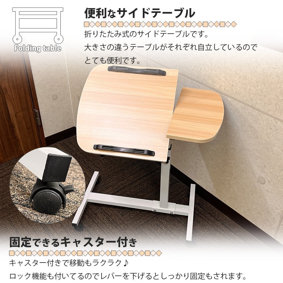 | ・ベッドやソファで使える簡易テーブル。 ・キャスター付きで移動もラクラク。レバーでロックもできる。 ・テーブルが2つに分かれているのでそれぞれに置きたいものが置ける。 ・テーブルは角度・高さそれぞれの調整が可能です。 ・介護や簡易テーブル等大変便利です。 ・テーブルは90°まで角度調整できるのでたたんで収納が可能。 ・タブレット等がずり落ちないようにストッパー付き。 ・カラーは4色展開。 |