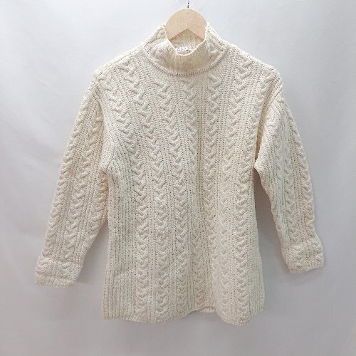 ◇ Talbots タルボット ハイネック ケーブル編み 長袖 ニット セーター サイズM アイボリー レディース E