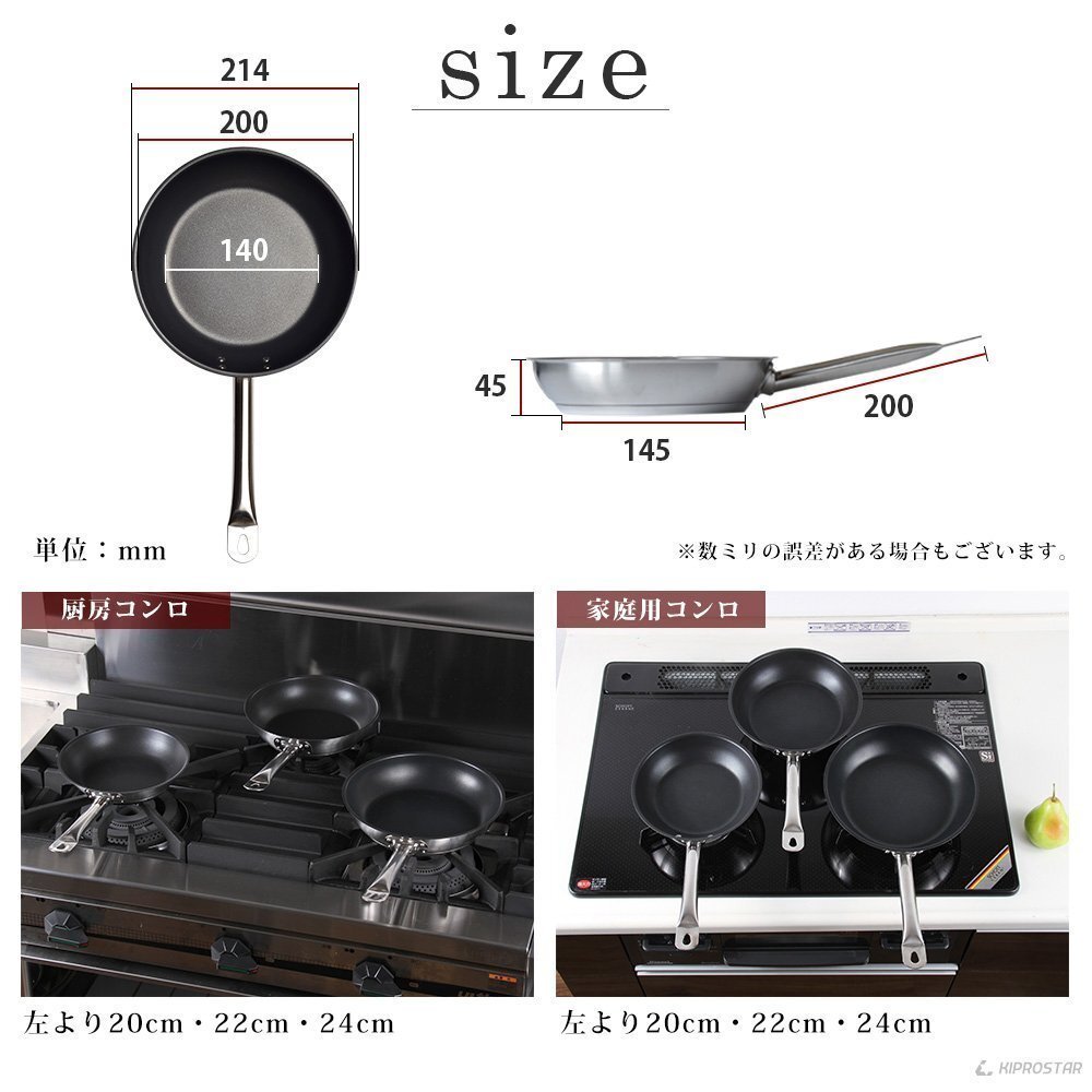 | 即納 KIPROSTAR業務用IHフライパン(表面フッ素樹脂コーティング加工) 20cm |