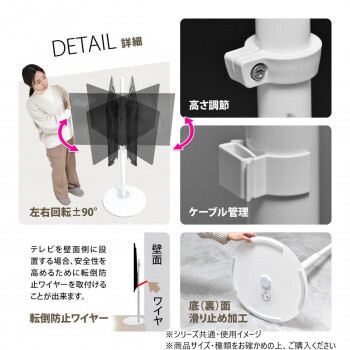 | 32~65型までのテレビに対応した、本体耐荷重40kgのテレビスタンド。首振り機能がついているので左右90度で角度が変えれますので、お好みの角度でテレビをご覧いただけます。スタイリッシュでモダンなデザインなので、設置するだけでお部屋の雰囲気をおしゃれに変えられます。 ※北海道・沖縄県・離島は別途送料発生いたします。 ※商品出荷後のキャンセルにつきましては、キャンセル料が発生いたします。キャンセルの場合は出荷前に早期ご連絡をお願いいたします。 |