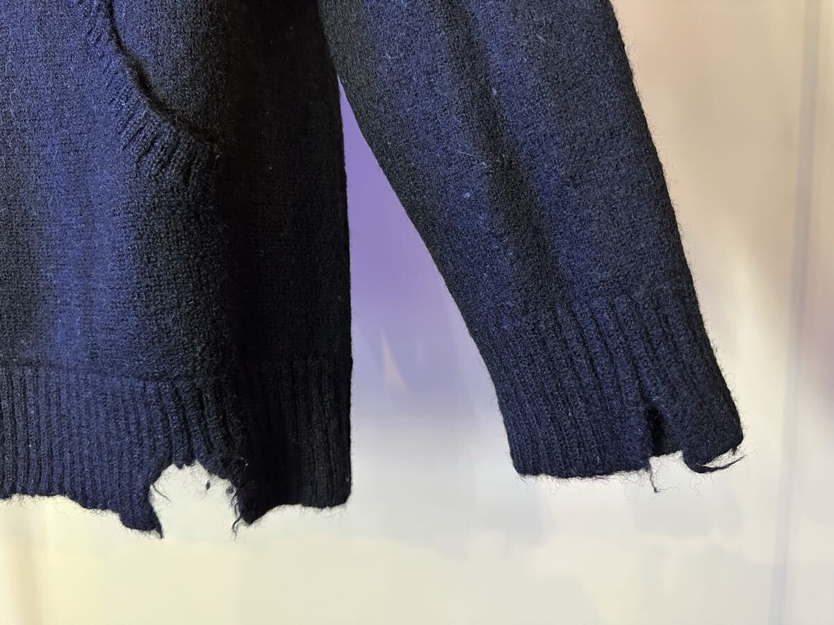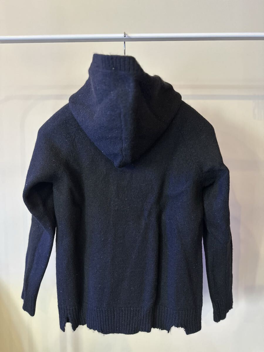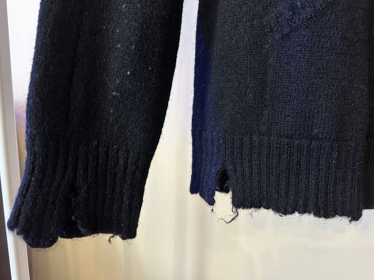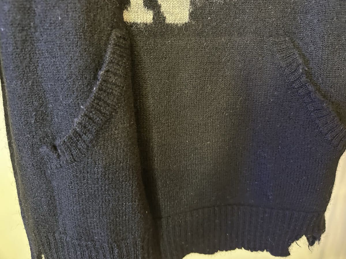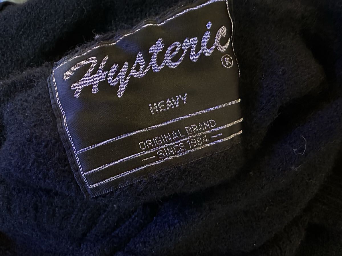 数年前に、ヒステリックグラマー公式店にて、購入致しました。画像にもありますが、袖先、裾、ポケット口、フードなどに、ダメージ加工が、施してあって、とても格好良いと思います。数回、着用して、クリーニングして、現在に至るまで大切に保管してまいりました。ウール100%なので、着用による多少の毛玉は、あります。特に、破れや、ほつれなどは、ありません。但し、ダメージ加工の為、加工による擬似損傷は、あります。是非この機会にいかがですか。