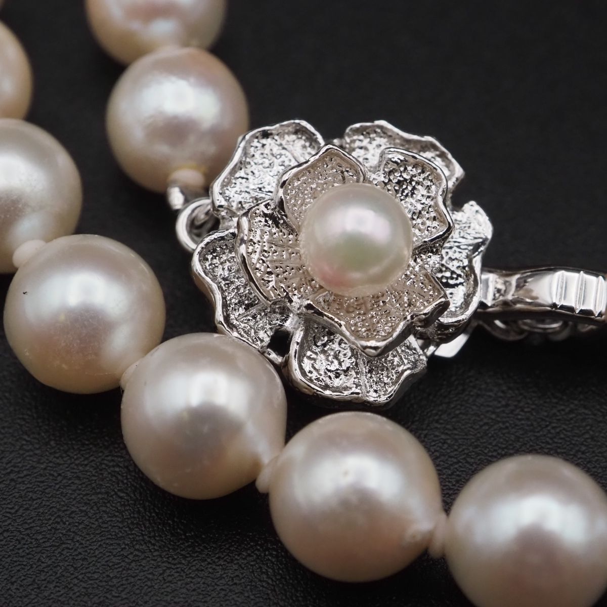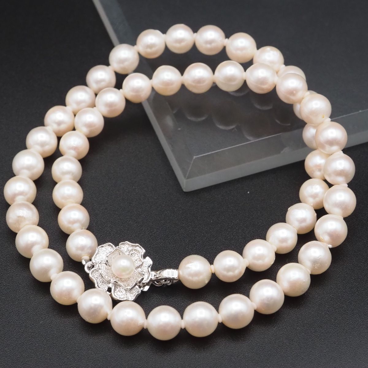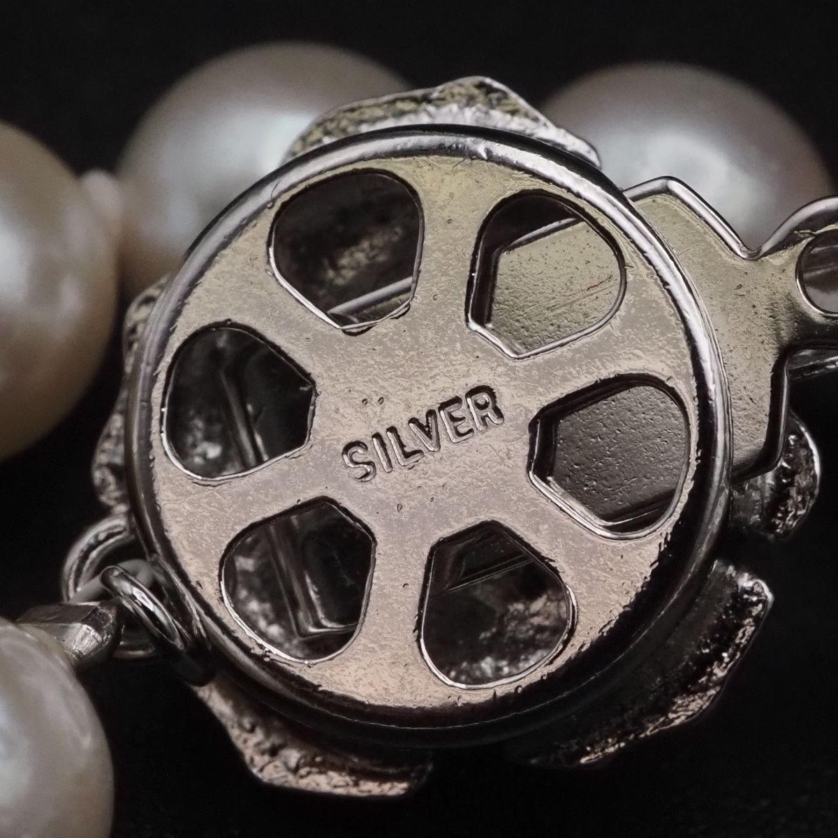 J844 本真珠 7.3mm珠 パール SILVER刻印 ネックレス デザイン シルバー 6月誕生石