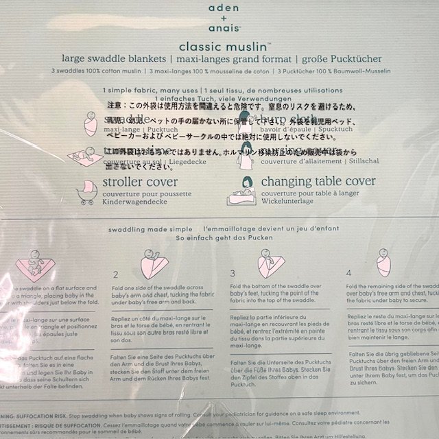 | ★新品・未開封品★aden+anais エイデンアンドアネイ クラシックモスリンラージスワドルブランケット 3枚セット おくるみ ベビー HMY |