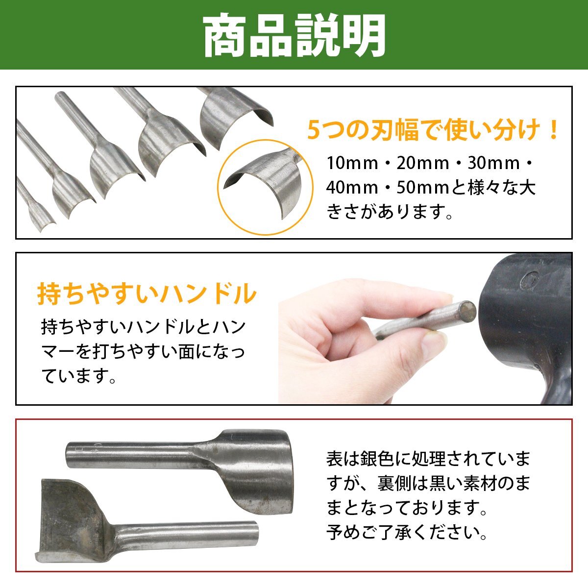 【送料250円】レザークラフト 工具 端落とし 半月型 U字型 5点セット 革細工 鞄 靴 財布 レザー 小物 エンドポンチ へり 落とし ポンチ