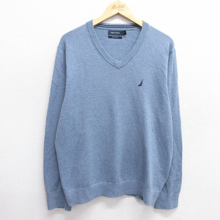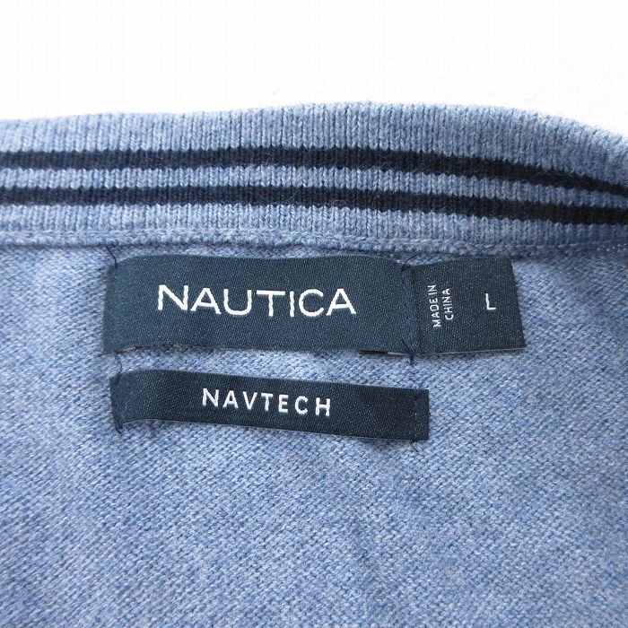 【商品名】 L★古着 ノーティカ 長袖 ブランド セーター メンズ ワンポイントロゴ Vネック 薄紺
