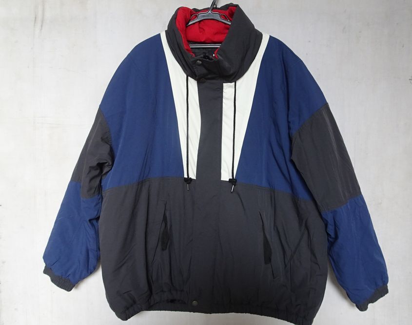 上部、袖ひじ下は、紺切り替え配色、