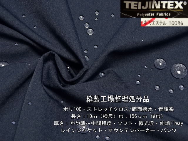 | ポリ100 ストレッチクロス 両面撥水 やや薄~中間ソフト 青紺10m | |