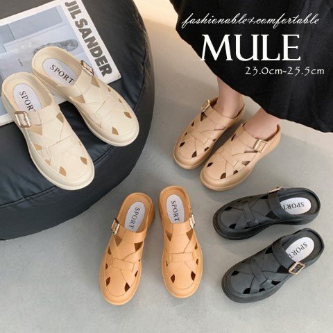 ・穴が開いたデザインで風を通し通気性に優れたミュール。