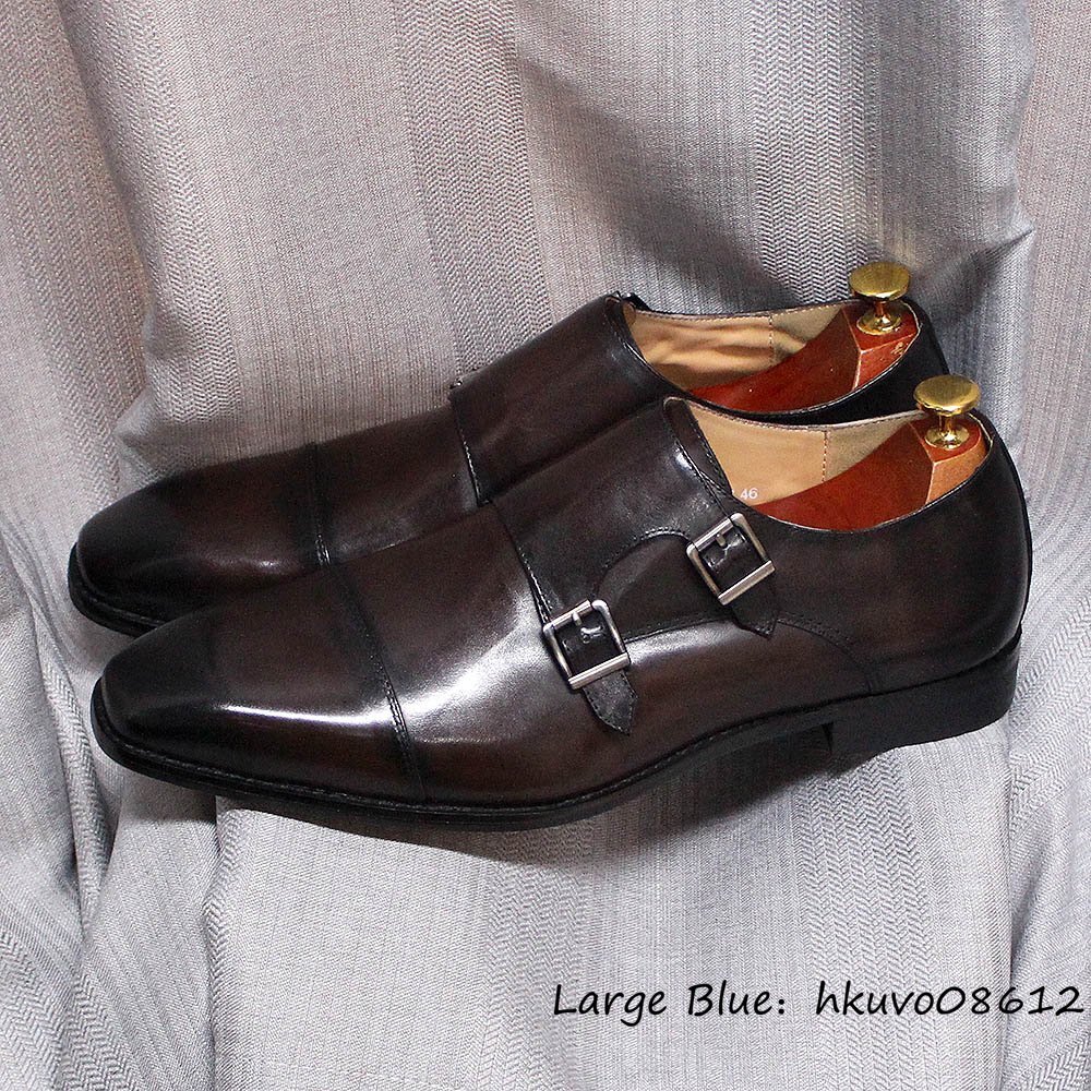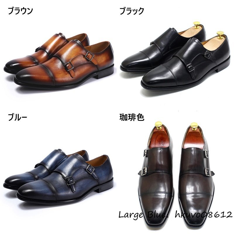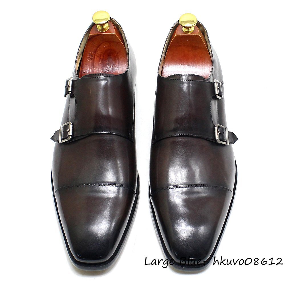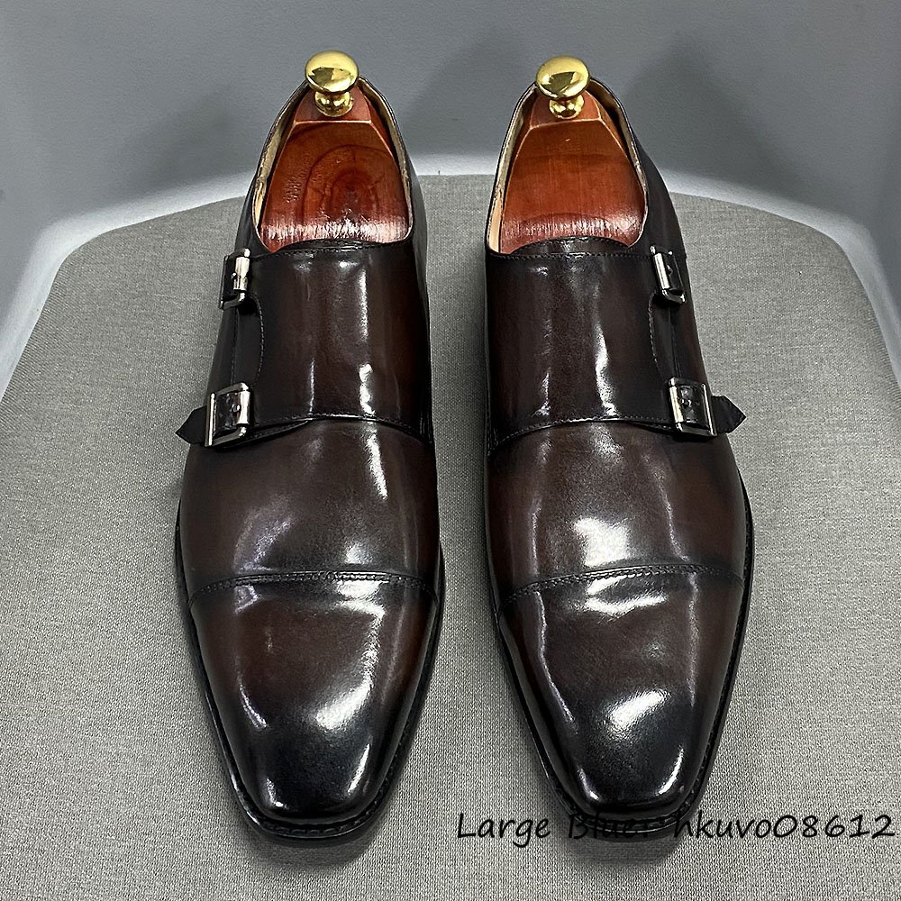 入手困難*ダブルモンクストラップ メンズ 本革 レザーシューズ 職人手作り ビジネスシューズ 最上級牛革 紳士靴 革靴 新品 珈琲色 24.5cm