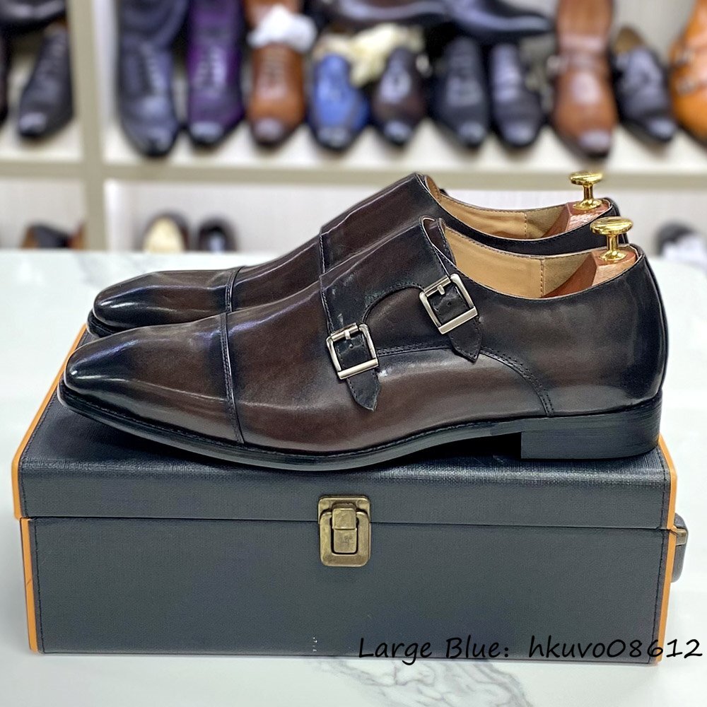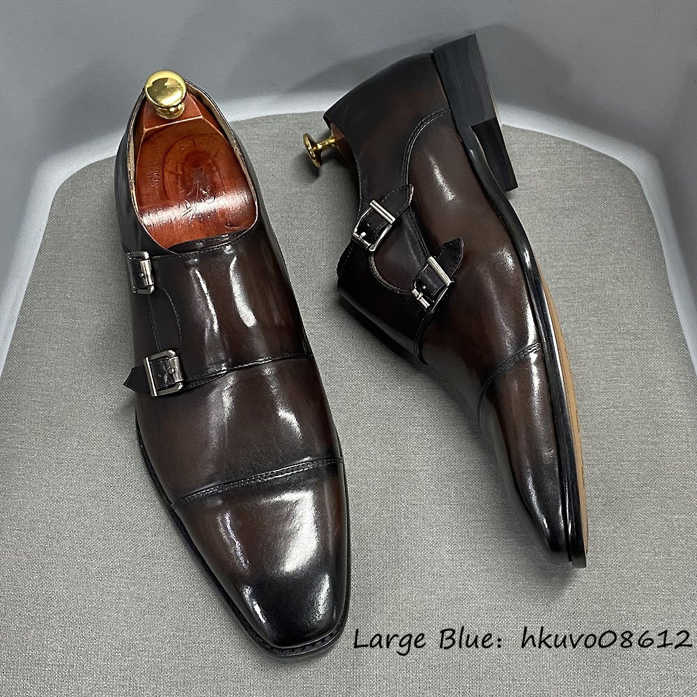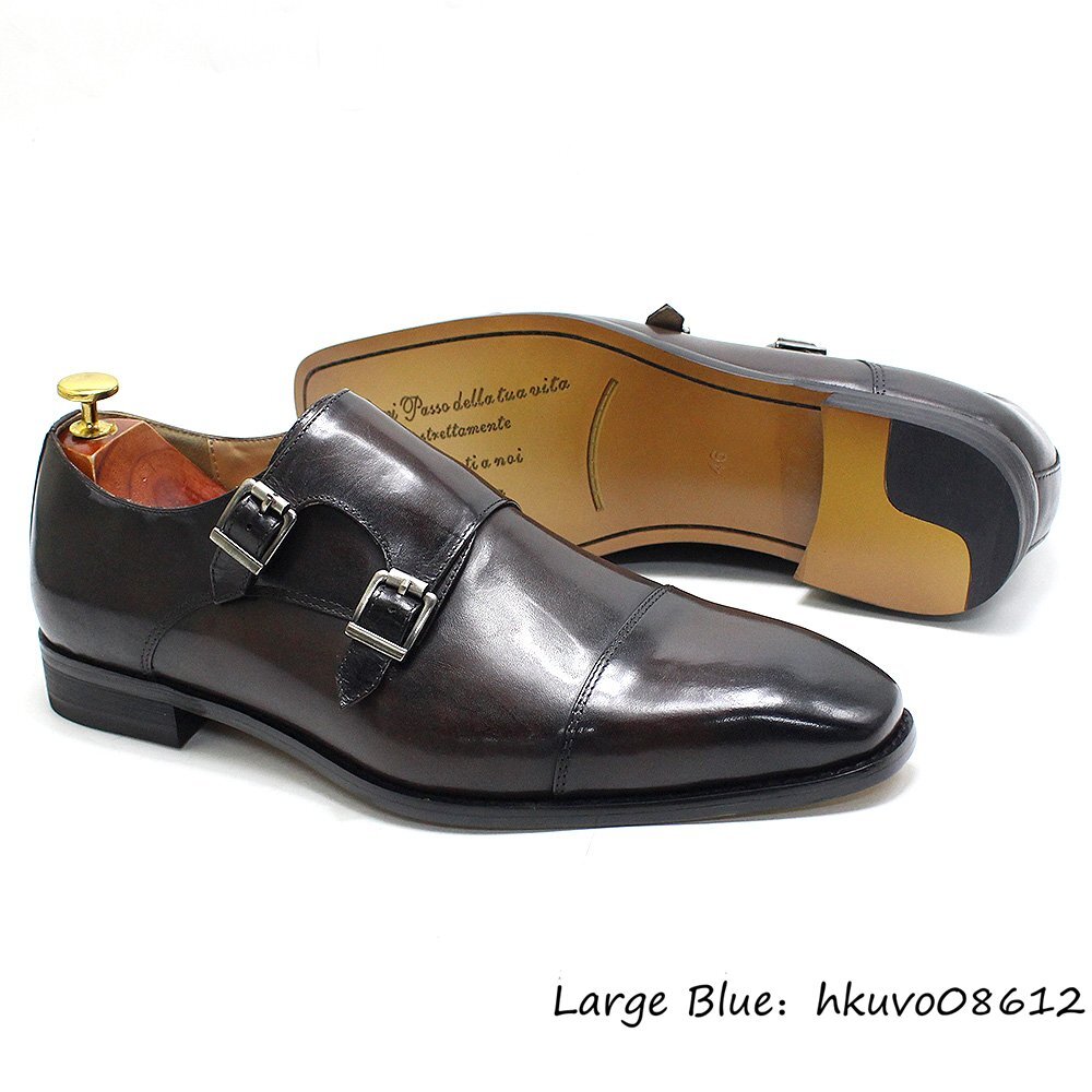 入手困難*ダブルモンクストラップ メンズ 本革 レザーシューズ 職人手作り ビジネスシューズ 最上級牛革 紳士靴 革靴 新品 珈琲色 24.5cm