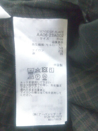 ◇ SENSE OF PLACE by URBAN RESEARCH チェック 長袖 シャツ ブラウス サイズF ブラック ブラウン レディース P