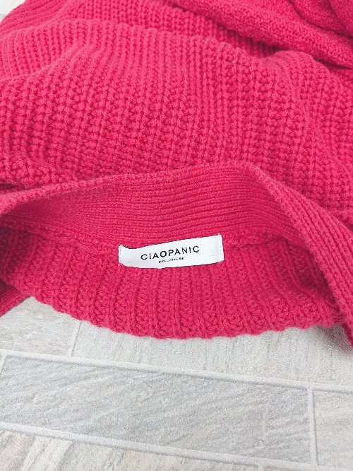 ◇ CIAOPANIC チャオパニック ニット ショート丈 長袖 カーディガン サイズF レッド レディース P