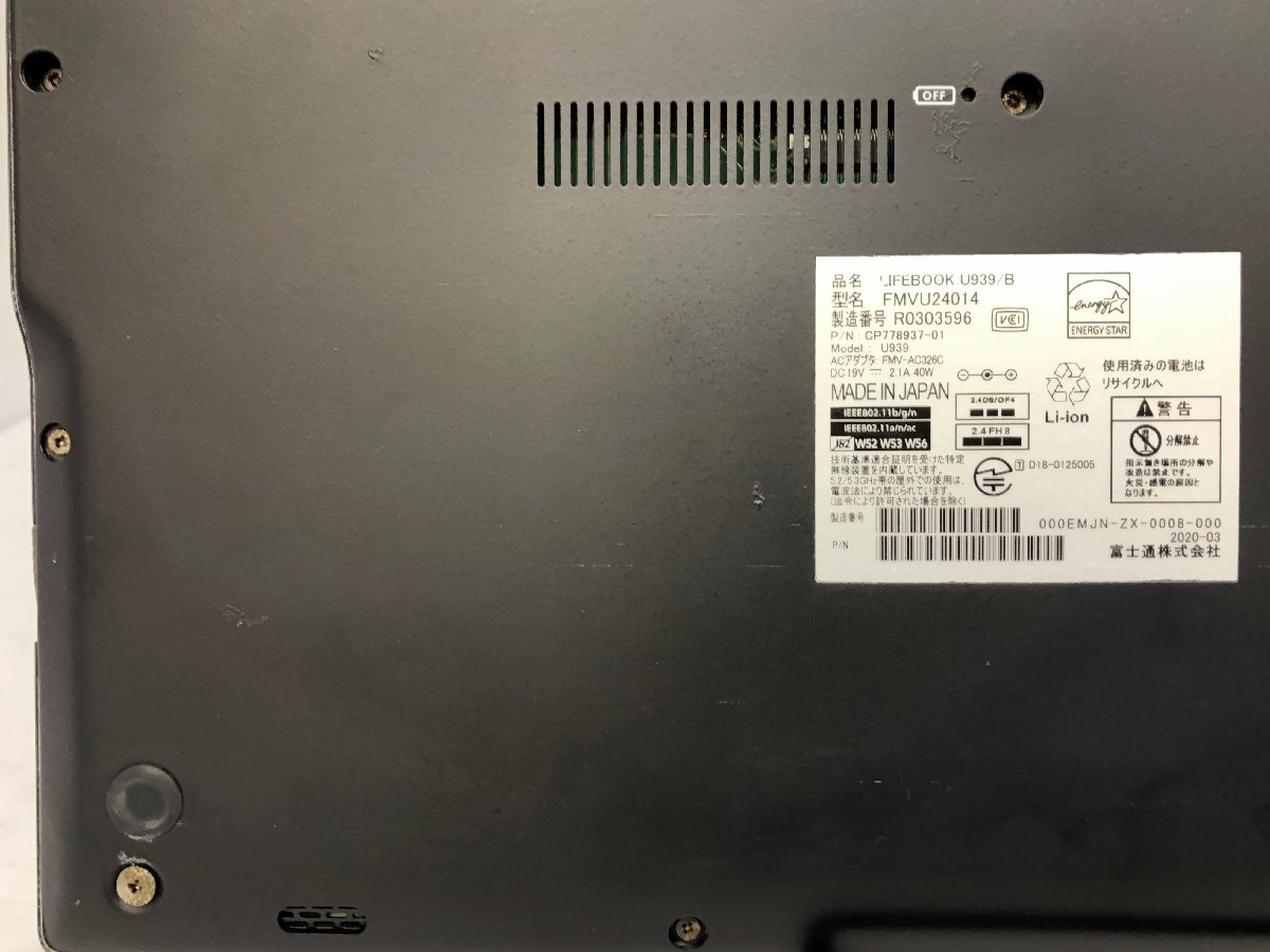 ジャンク/ FUJITSU FMVU24014 LIFEBOOK U939/B Intel Core i5-8365U メモリ8.19GB ストレージ無し 【K25223】