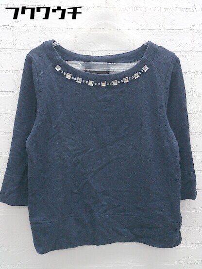 ◇ green label relaxing UNITED ARROWS ラインストーン 長袖 Tシャツ カットソー ネイビー レディース