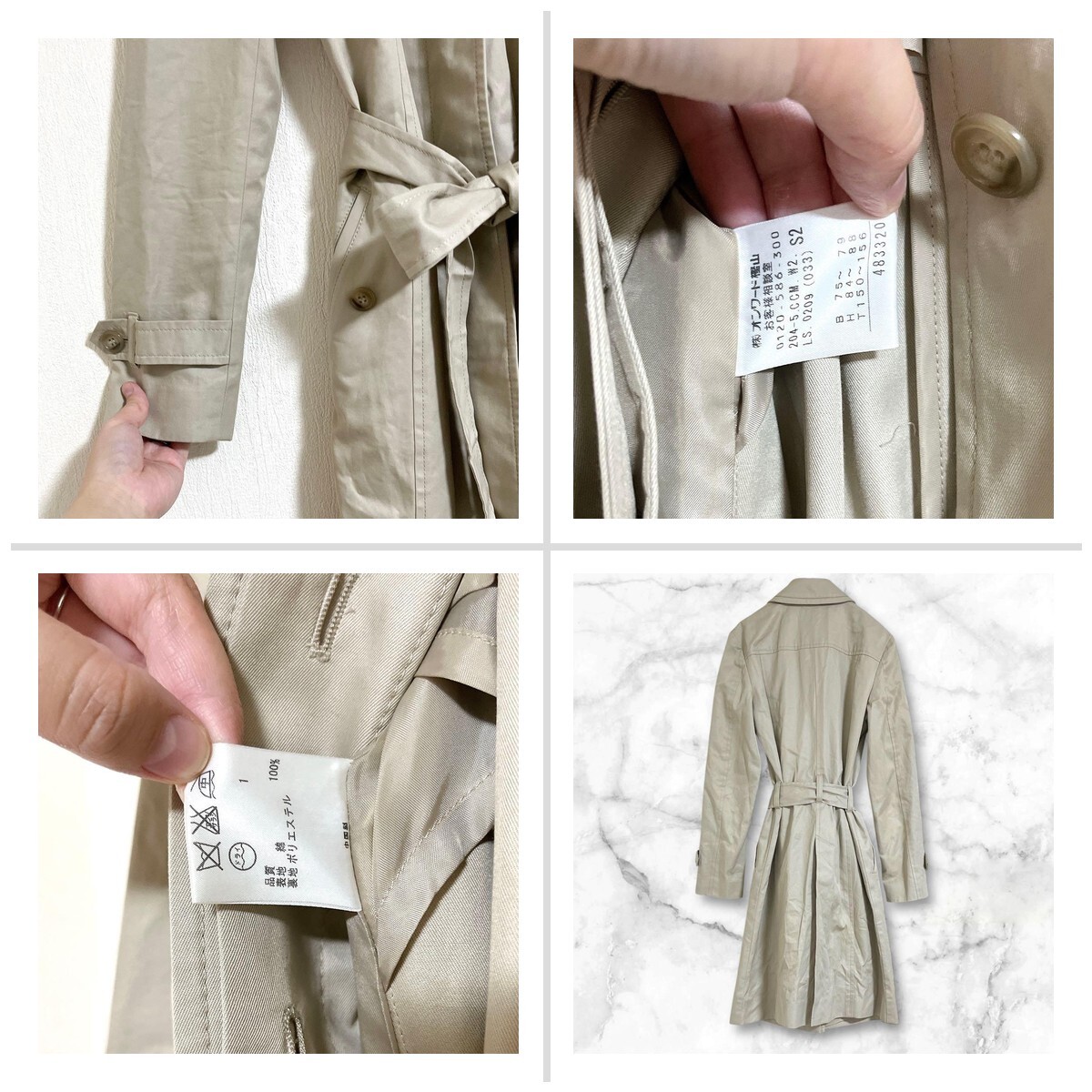 組曲 オンワード樫山 ベージュ トレンチコート コットン100 S シンプル 6AF19C