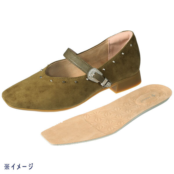 | 内 容 | ■フィオリノ はっ水山羊革 アンティーク風バックル メリージェーンパンプス ■サイズ 36(23.0cm相当)/3E ■その他 ・ヒールの高さ:約2.5cm ・前底厚み:約0.5cm ・前側着地点厚み:約0.5cm ・高低差:約2cm ■重さ ・片足約265g(サイズにより多少の差異あり) ■素材 ・外側:山羊革 ・内側:ポリエステル、合成皮革 ・アウトソール:合成ゴム ■カラー ブラック ◆参考価格 21400円相当 厳選した柔らかな山羊革を使用。 はっ水性があり、お手入れがしやすい素材です。 指先がしっかり伸ばせるよう、スクエアトゥデザインを採用。 丸みのあるカットラインとストラップが、 クラシカルでかわいらしい雰囲気を演出。 そこに、シルバーカラーのバックルや小粒の スタッズを加えることで、甘辛デザインに仕上げました。 ライニングとインソールは、抗菌防臭性のある マイクロファイバー素材を使用。 カップインソールは、ドイツ“BASF社”製の 発泡ポリウレタンを用いており、高反発の クッション性と丈夫さが特徴です。 ソールは、合成ラバー材を用いた一体成型型モールドソールで、 丈夫で滑りにくく、屈曲性が良いため歩きやすい仕上がり。 ※天然素材特有のスレ、シワ、シミ、色ムラがあります |
