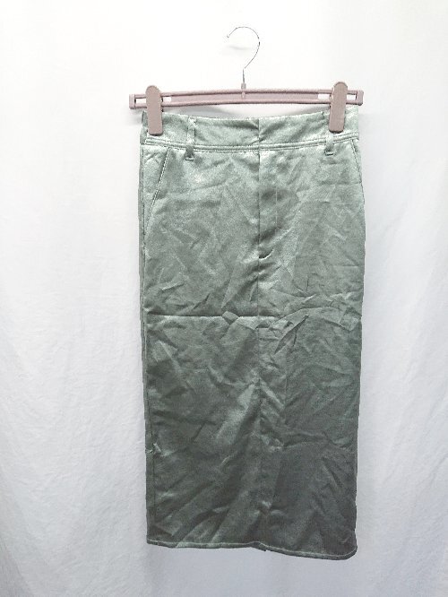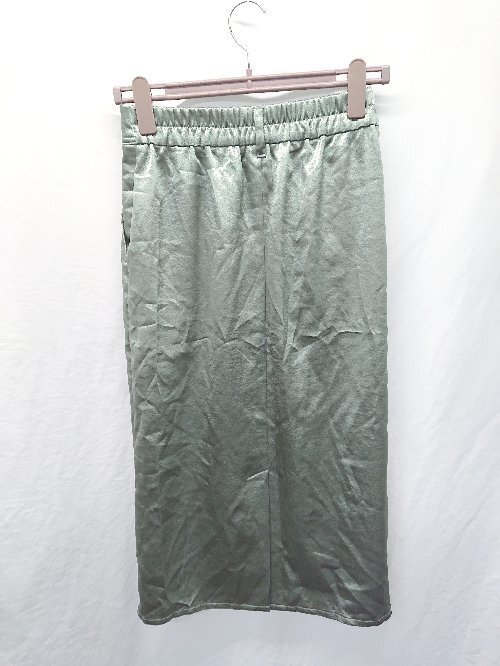 ◇ Θ SALON adam et rope サテン調 光沢感 膝下丈 ナロー スカート サイズS グリーン系 レディース E