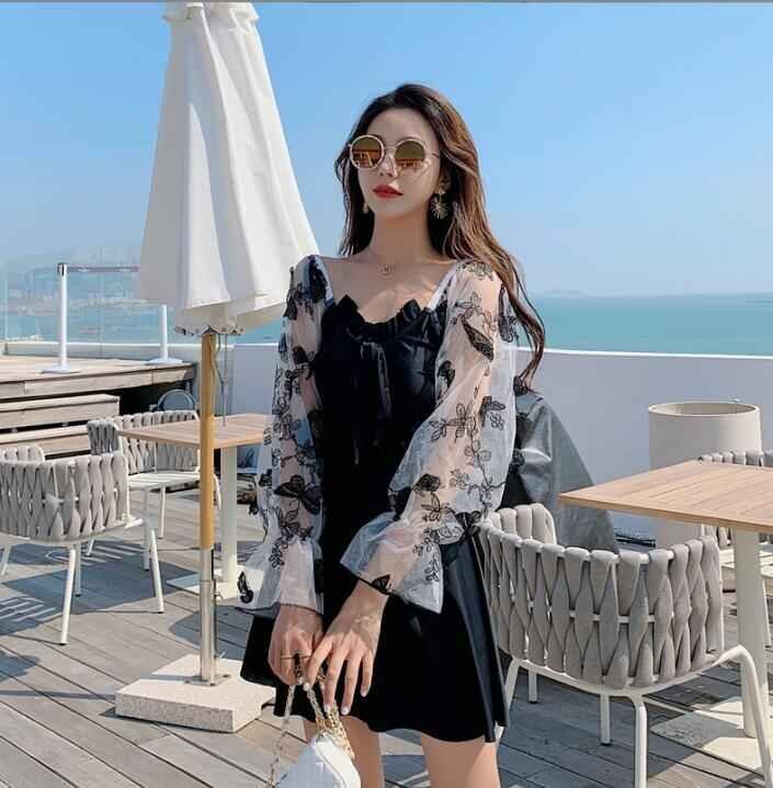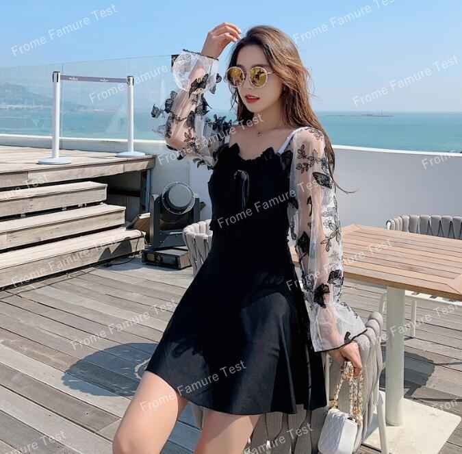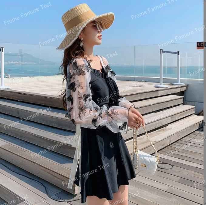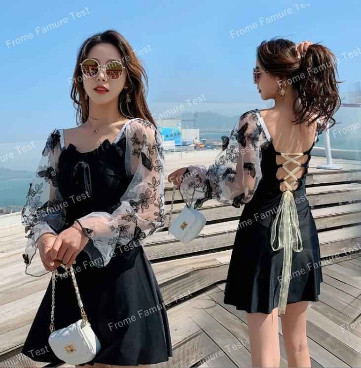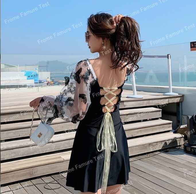 レディース 体型カバー 水着 オールインワン ワンピース水着 スカート水着 フリル スイムウェア M ブラック