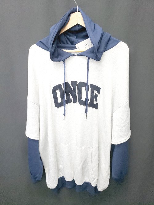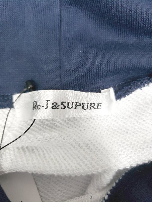 ◇ ◎ ●未使用● ⊆ Re-J & SUPURE ロング丈 ロゴ 長袖 プルオーバー パーカー サイズLL グレー ネイビー レディース E