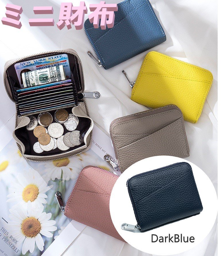 ミニ財布 レディース ダークブルー 本革 財布 さいふ 小銭入れ がま口財布 薄型 コインケース カードケース スキミング防止 n511