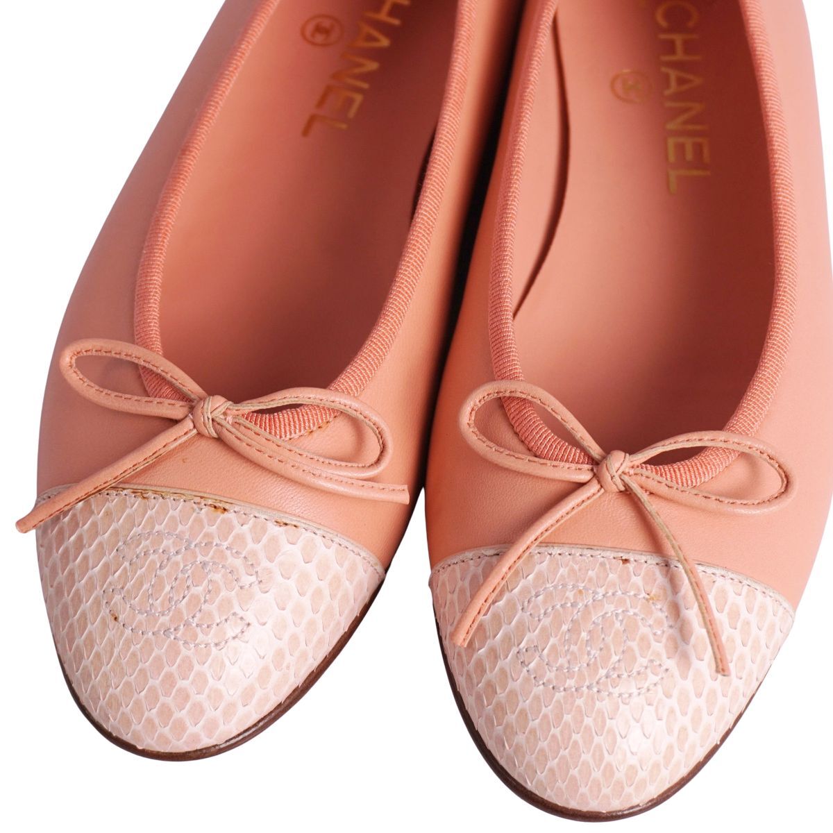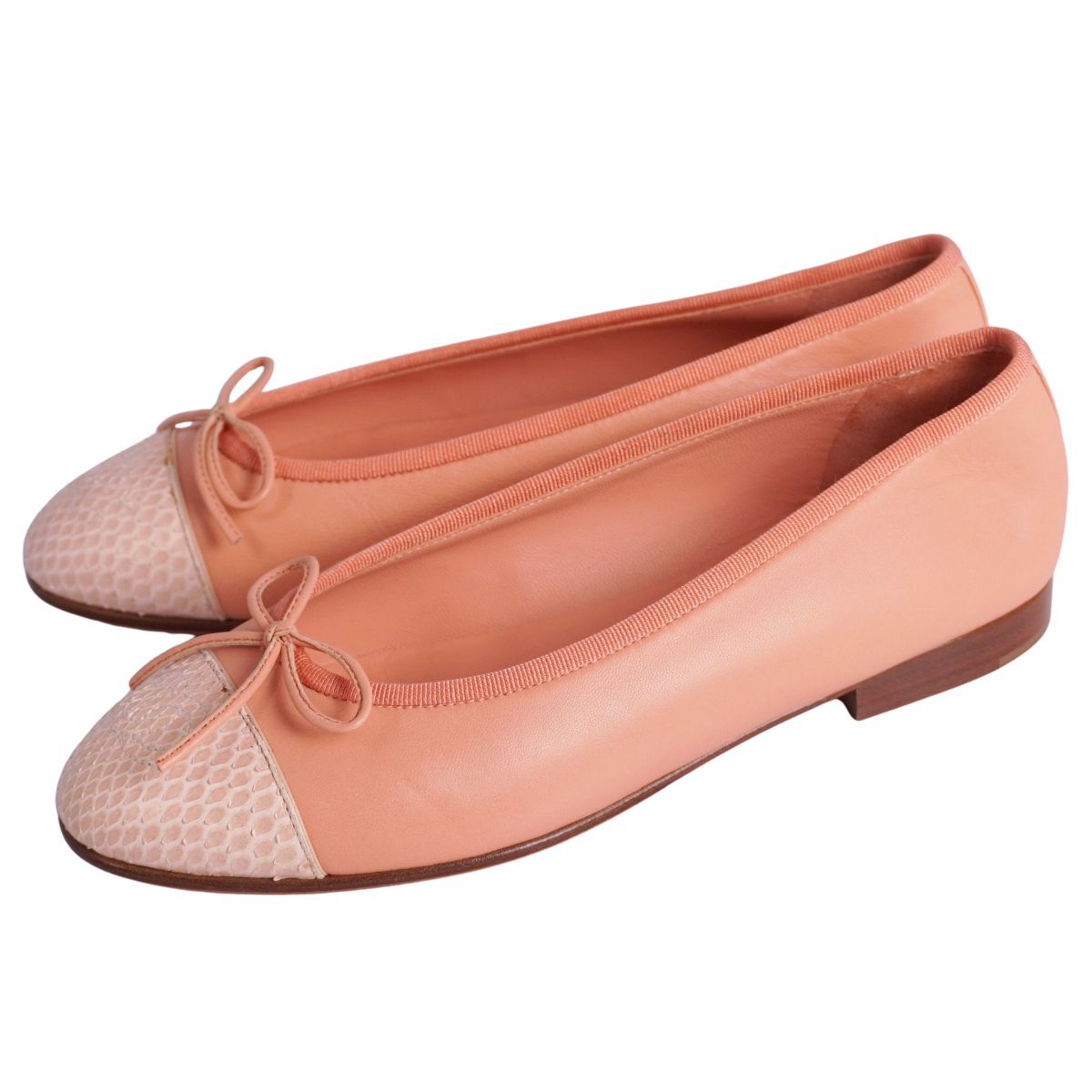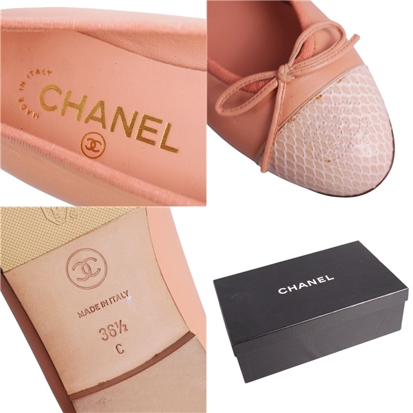 | 未使用 シャネル CHANEL パンプス バレリーナ G02819 リボン ココマーク パイソン レザー シューズ 靴 36.5C ピンク |