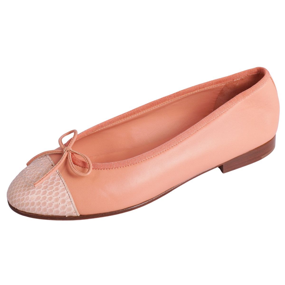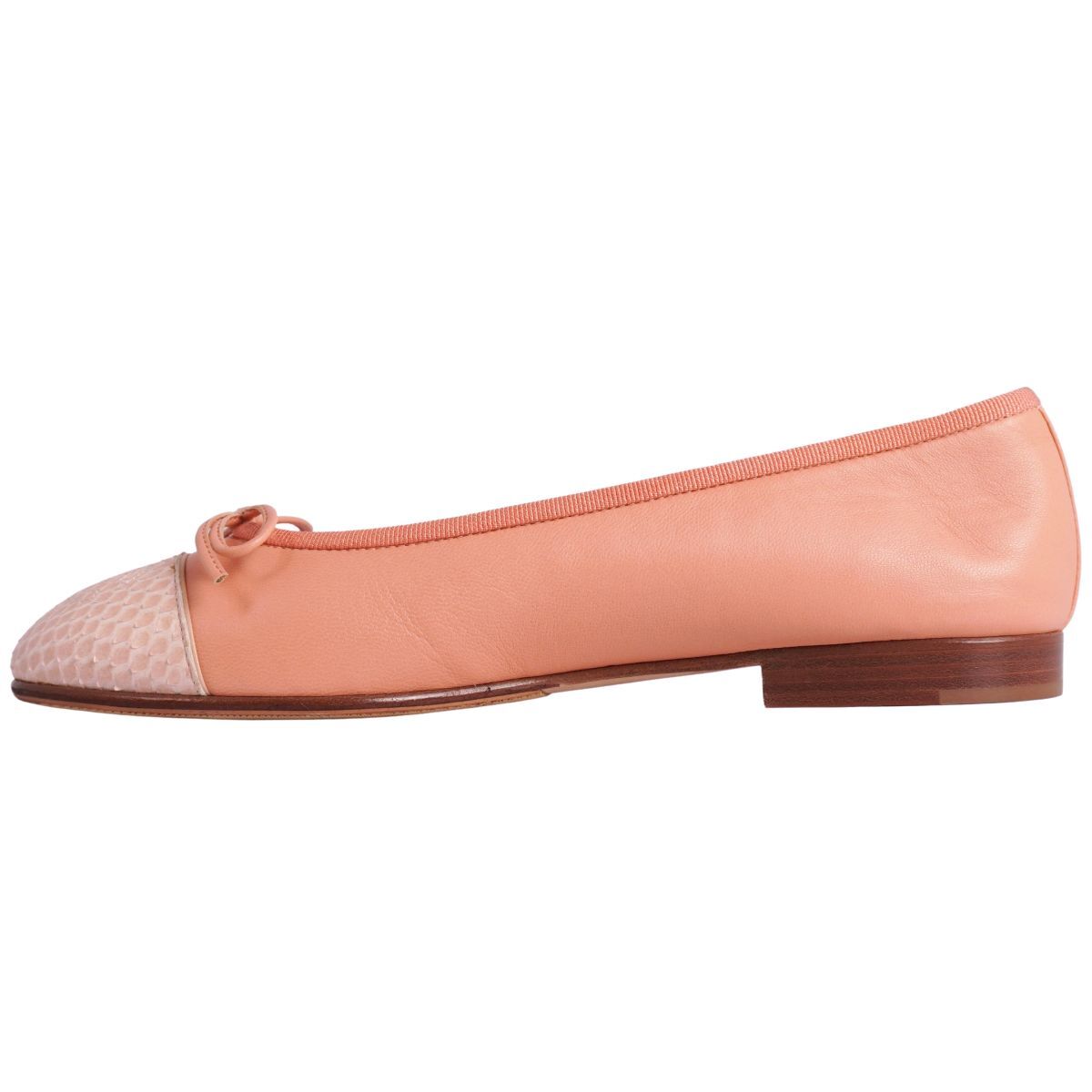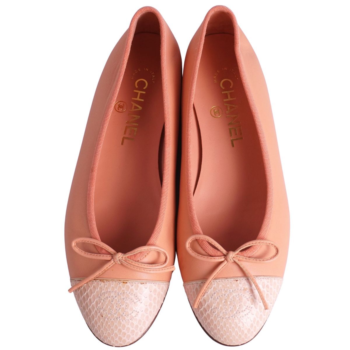 | 未使用 シャネル CHANEL パンプス バレリーナ G02819 リボン ココマーク パイソン レザー シューズ 靴 36.5C ピンク |