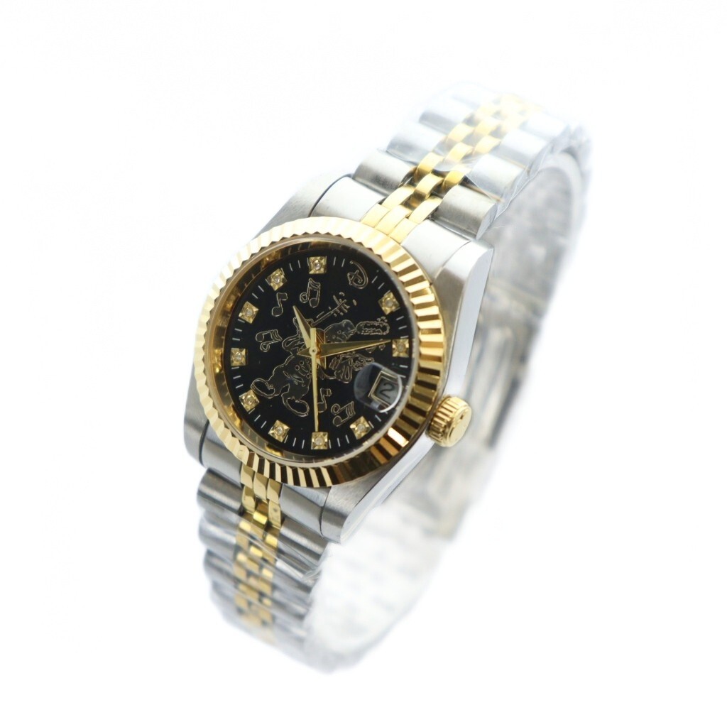 ディズニー Disney PV-2160 腕時計 ウォッチ クォーツ ミッキーマウス 黒文字盤 カレンダー付き デイト ゴールド色 シルバー色 ■GY11