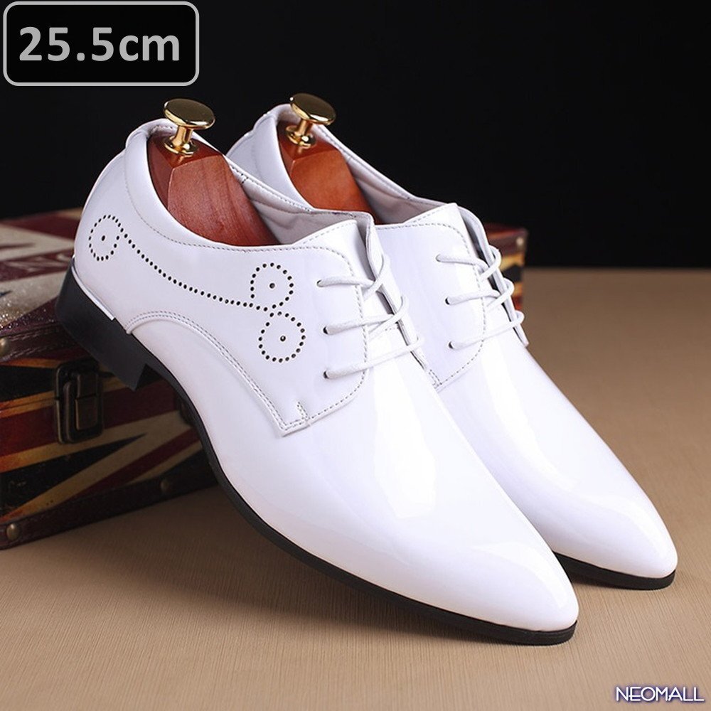人気商品 ☆ メンズ ビジネス レザー シューズ ホワイト サイズ 25.5cm 革靴 靴 カジュアル 屈曲性 通勤 軽量 【443】