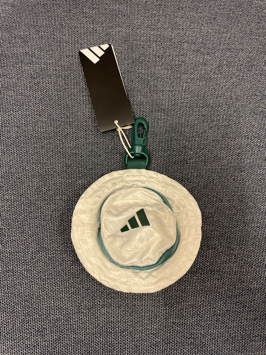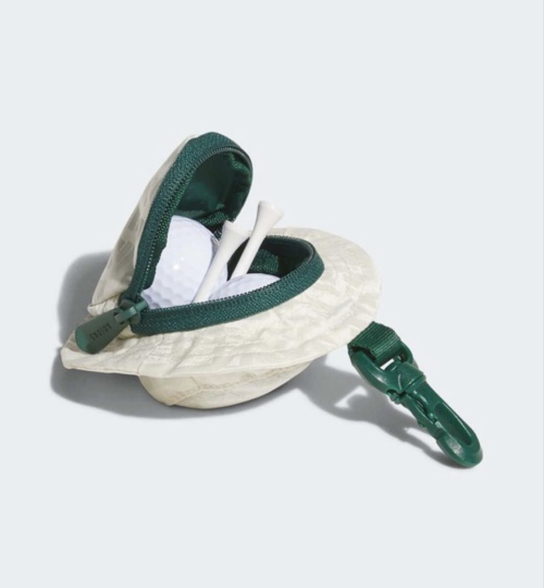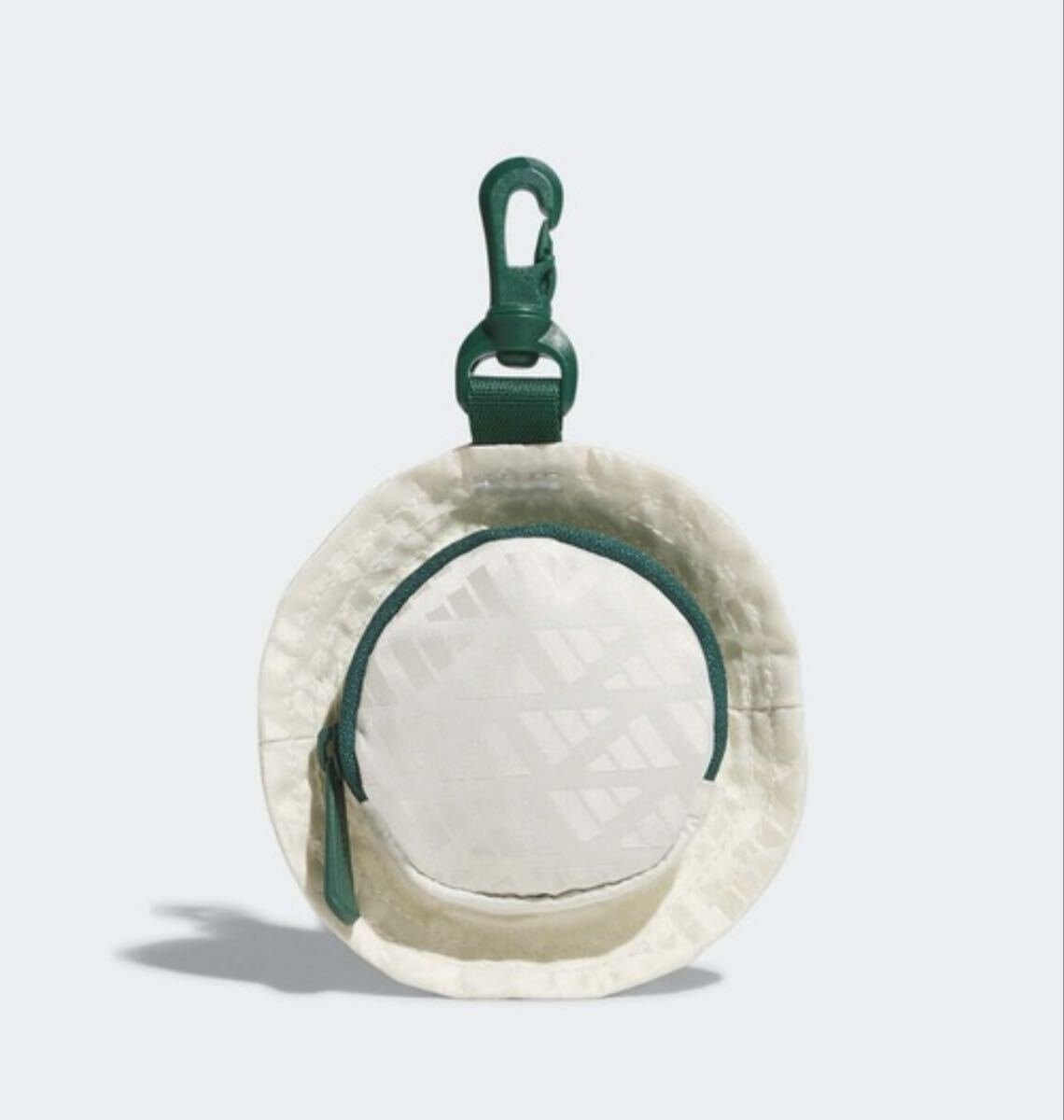 ジッパーで開閉できるユニークなデザインのアディダス ボールケースはクリップが付いていて、ゴルフバッグなどのストラップに取り付けられることができる。